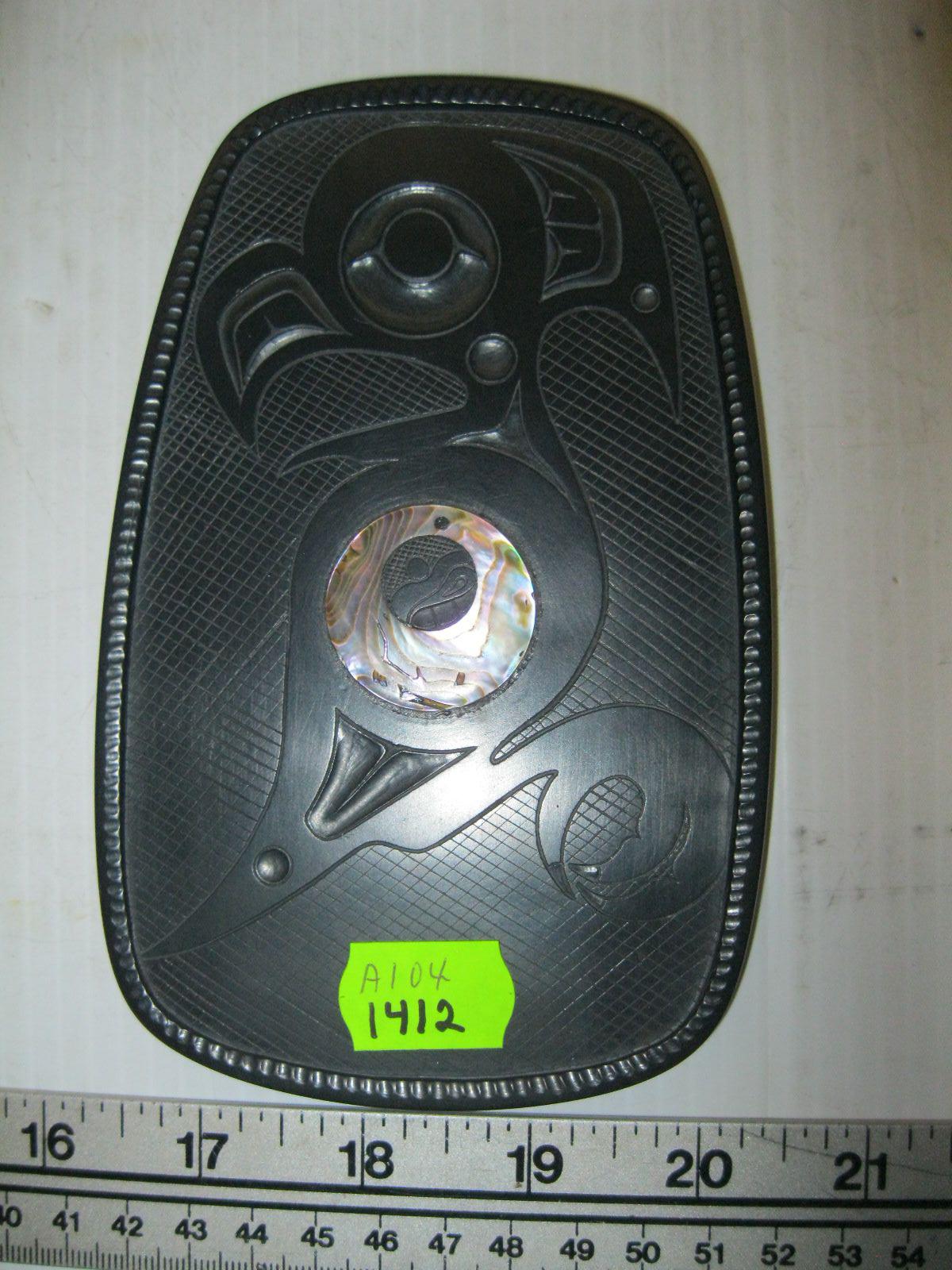 ARGILLITE PLAQUE, APPROX. 6 X4 , W/CARVING, SIGNED