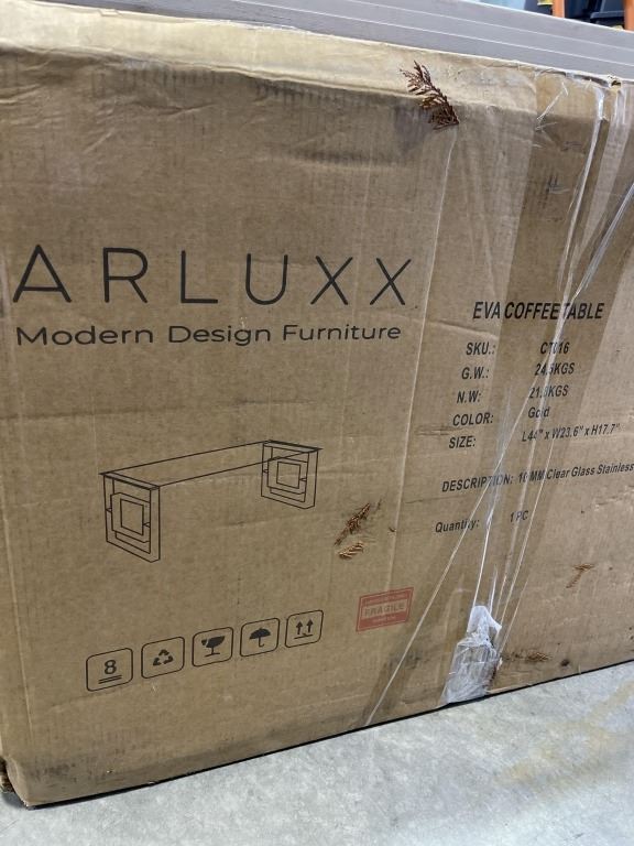 ARLUX MODERN DESIGN EVA COFFEE TABLE, GOLD WITH GLASS TOP