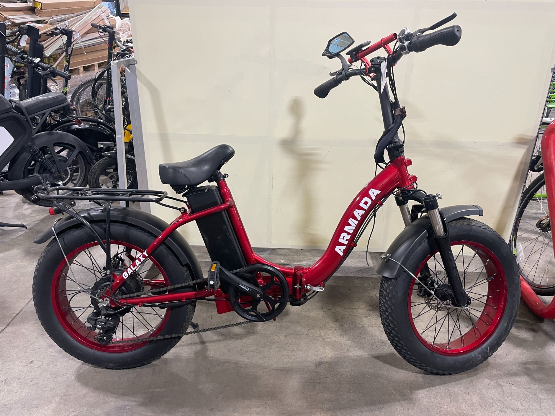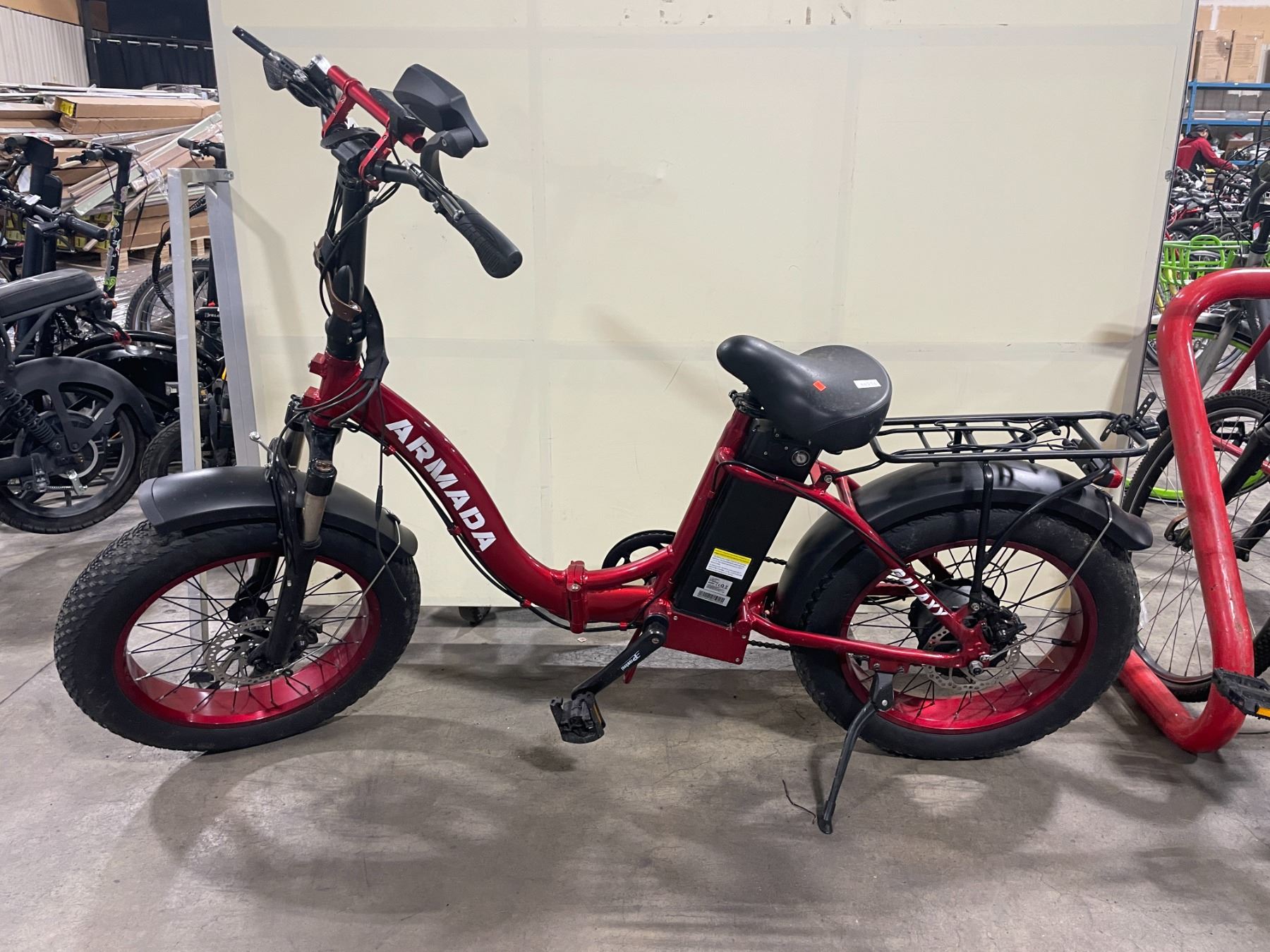 ARMADA RED 7 SPEED FRONT SUSPENSION ELECTRIC BIKE WITH FULL DISC BRAKES *NO KEY, NO CHARGER, SEAT NEEDS REPAIR*