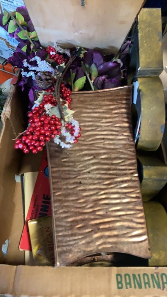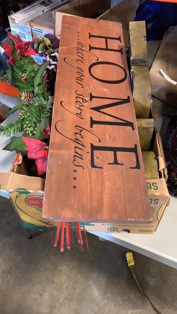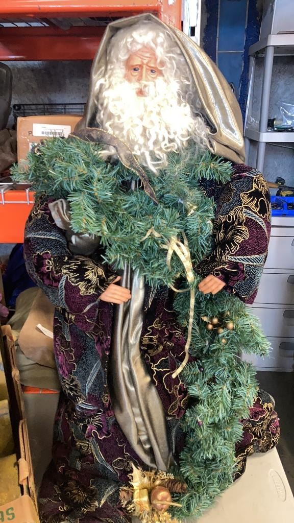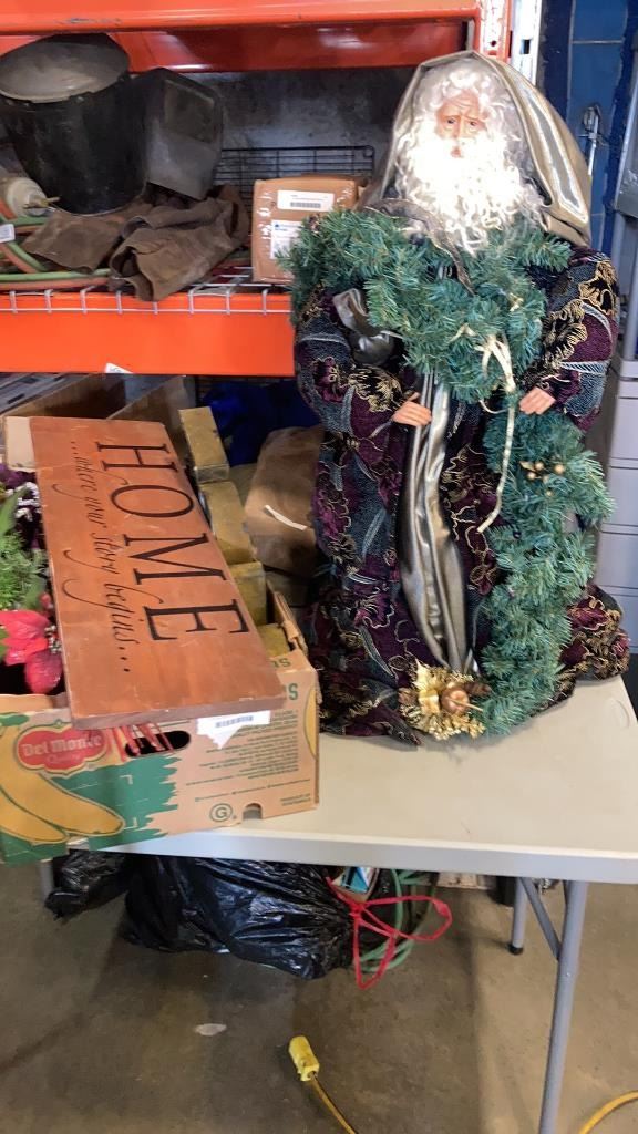ARTIFICIAL PLANTS, VASE, SANTA FIGURE, HOME SIGN