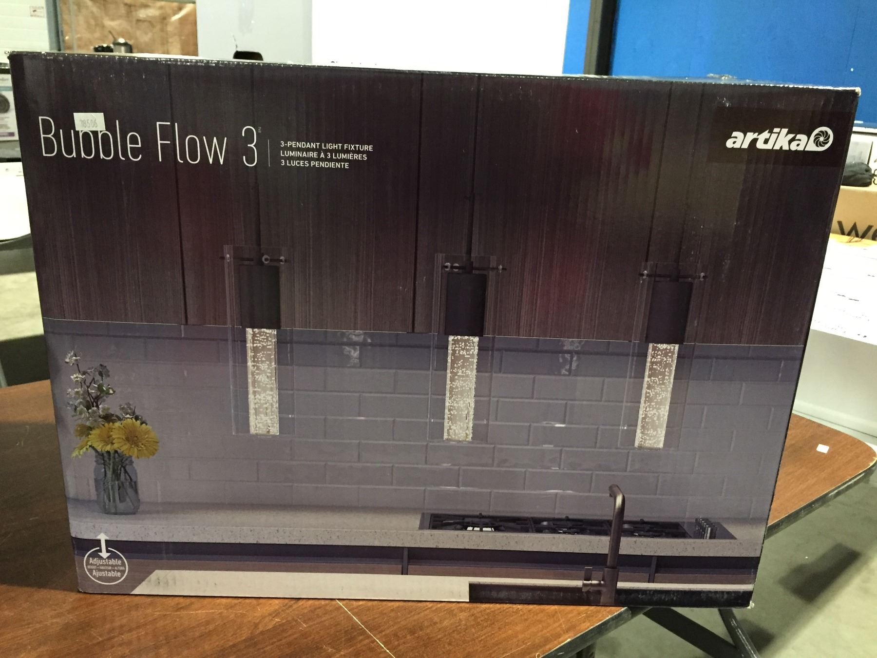 ARTIKA BUBBLE FLOW 3 - 3-PENDANT LIGHT FIXTURE - PREMIUM CRYSTAL GLASS, BRONZE FINISH, BULBS NOT