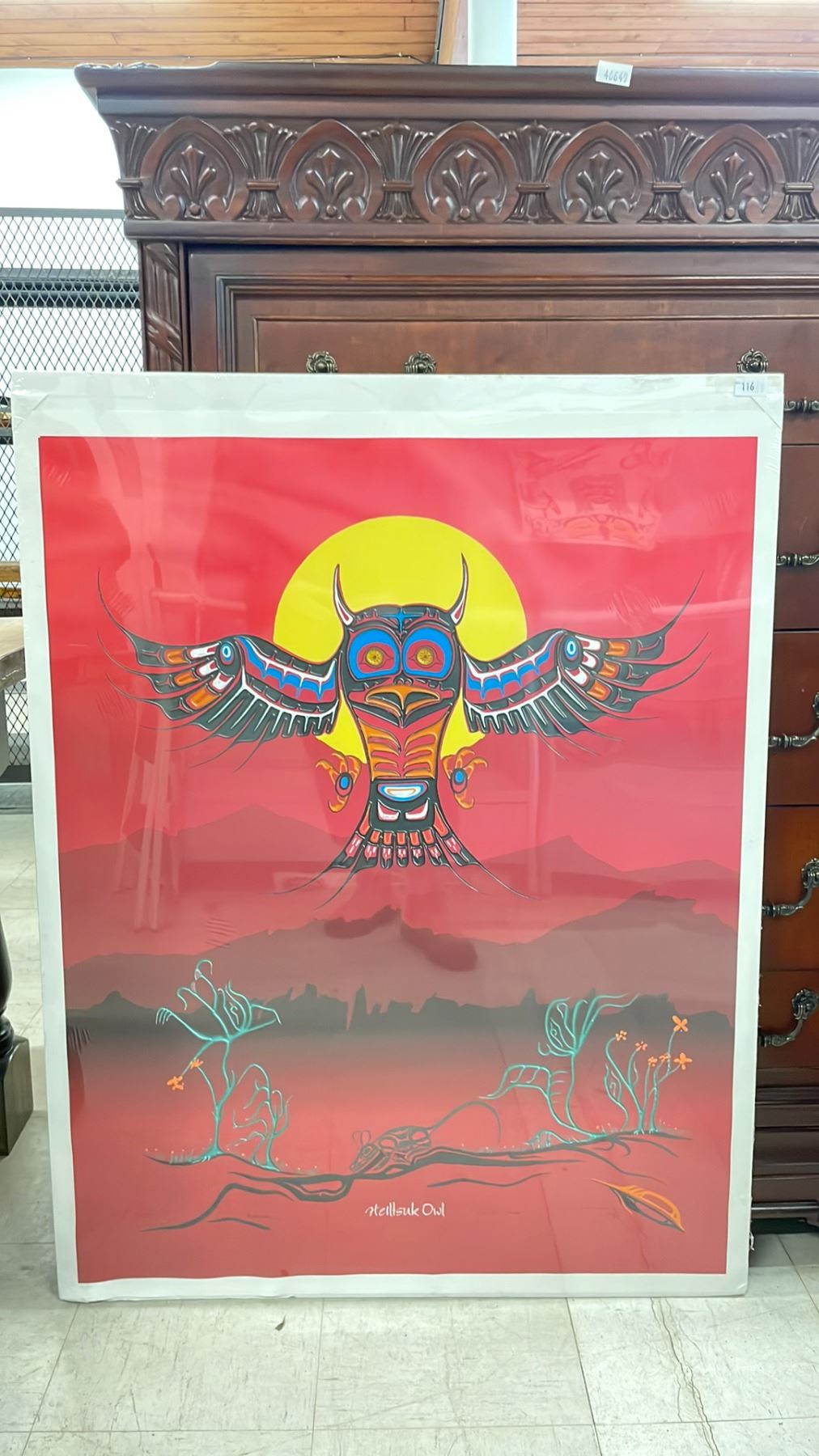 ARTIST PROOF (1/25) BY F. ANDERSON JR TITLED "HEILTSUK OWL 'LIVING TREE'" 34" X 44.5"