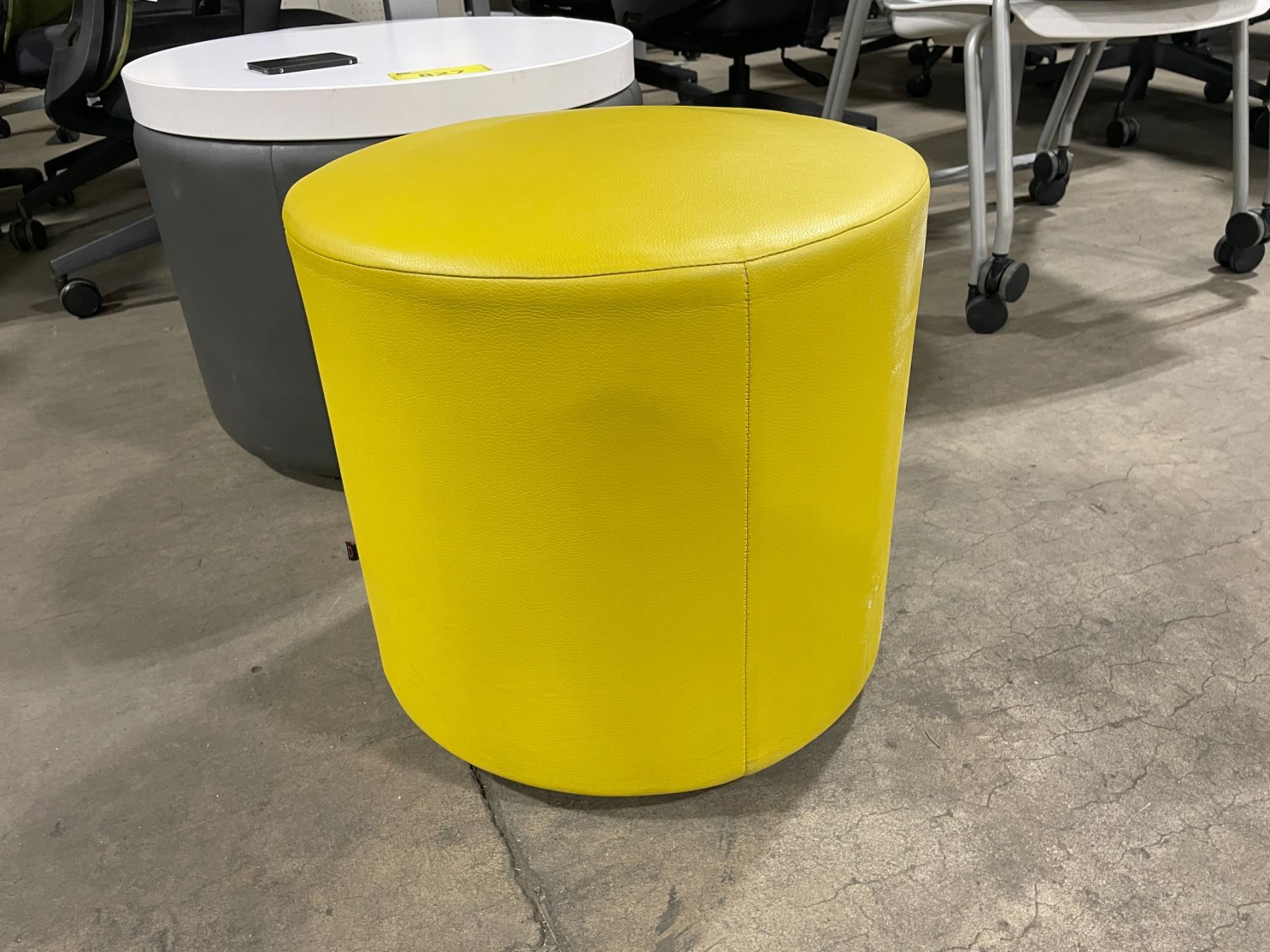 ARTOPEX PLUS INC. YELLOW LEATHER LOOK RECEPTION MODULAR PADDED OTTOMAN 18" ROUND 18"H