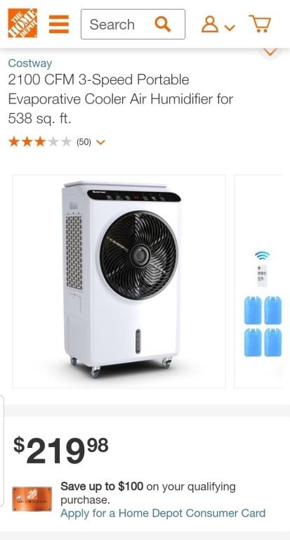 AS NEW 2100CFM 3 SPEED AIR HUMIDIFIER PORTABLE EVAPORATIVE FOR 538 SQ. FT.