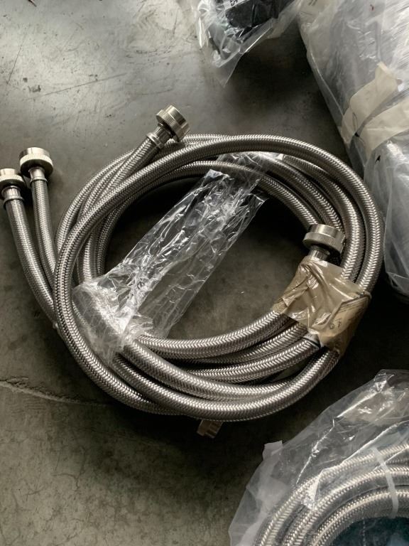 AS NEW 4 SMART CHOICE UNIVERSAL 6 FT. WASHER HOSES - AND 2 UNIVERSAL 8" HYBRID DRYER VENTS TOTAL 4 HOSES AND 2 VENT TUBES RETAIL $200