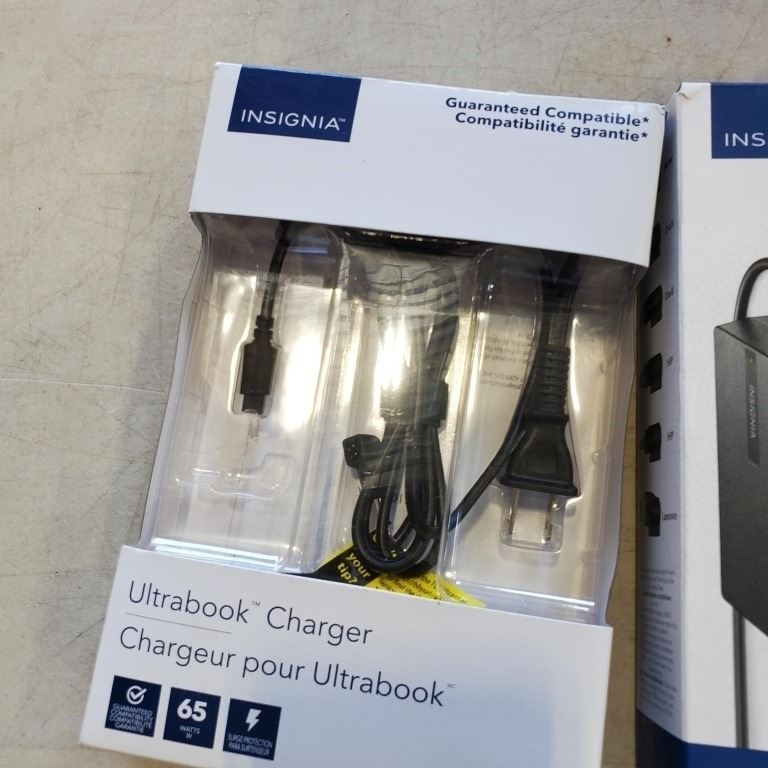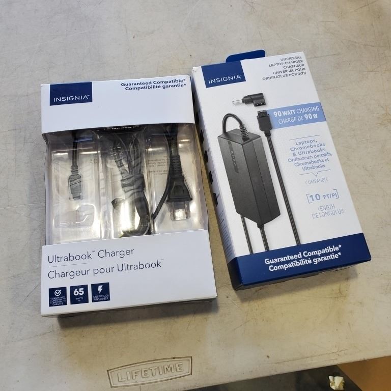 AS NEW 65 WATT ULTRABOOK CHARGER AND INSIGNIA 90 WATT UNIVERSAL CAHRGER