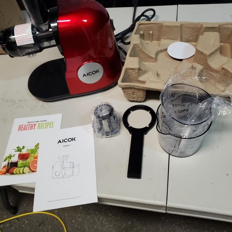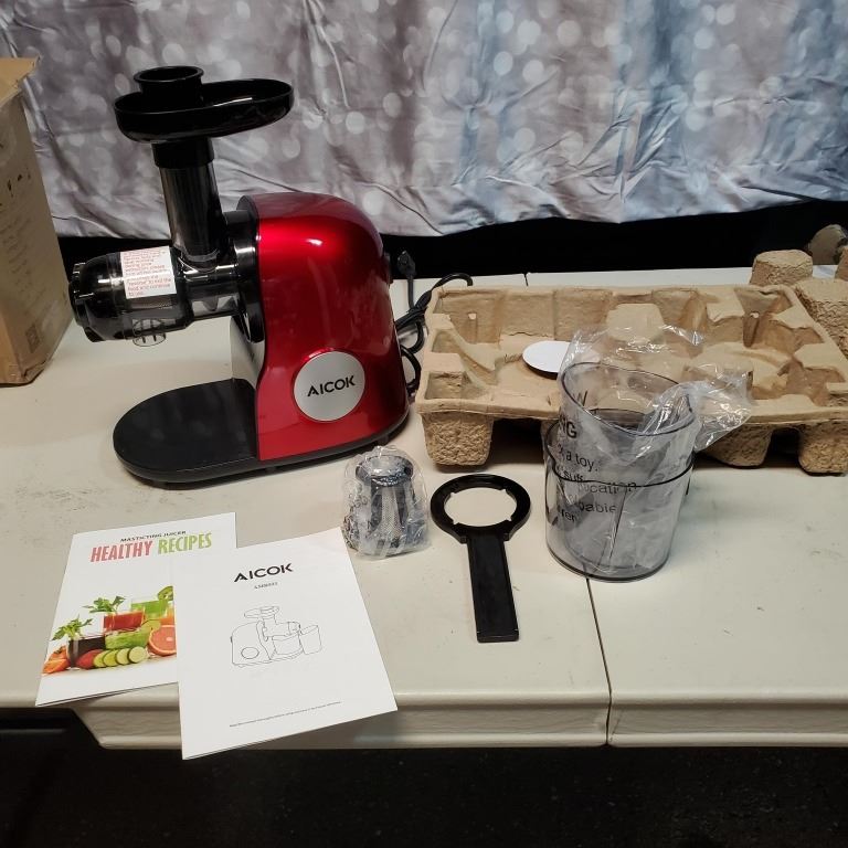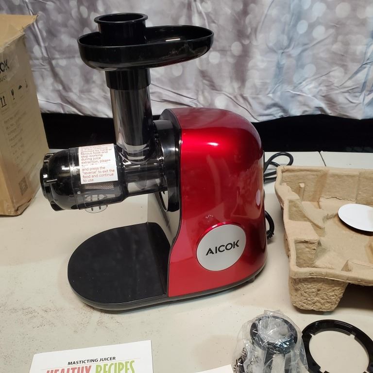 AS NEW AICOK SLOW JUICER AND SANDWICH MAKER BOTH TESTED AND WORKING