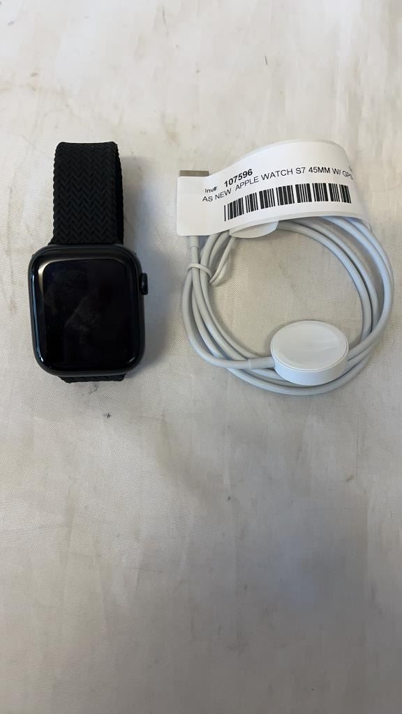 AS NEW APPLE WATCH S7 45MM W/ GPS AND CELLULAR LTE W/ CHARGER AND BAND, NO BOX - TESTED WORKING - RETAIL $549