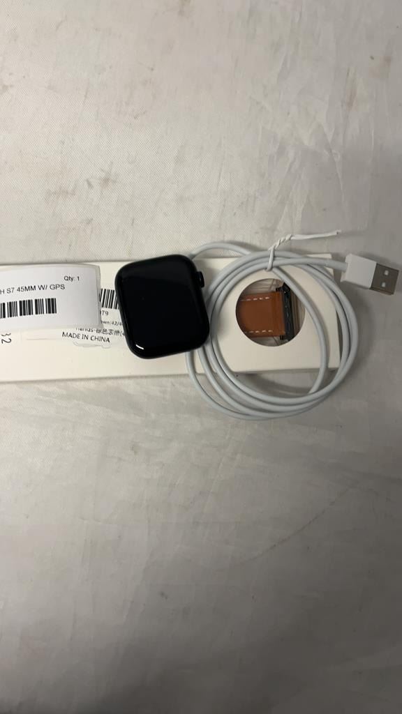 AS NEW APPLE WATCH S7 45MM W/ GPS AND LTE CELLULAR, NEW GENUINE LEATHER BAND, AND CHARGER - WATCH RE