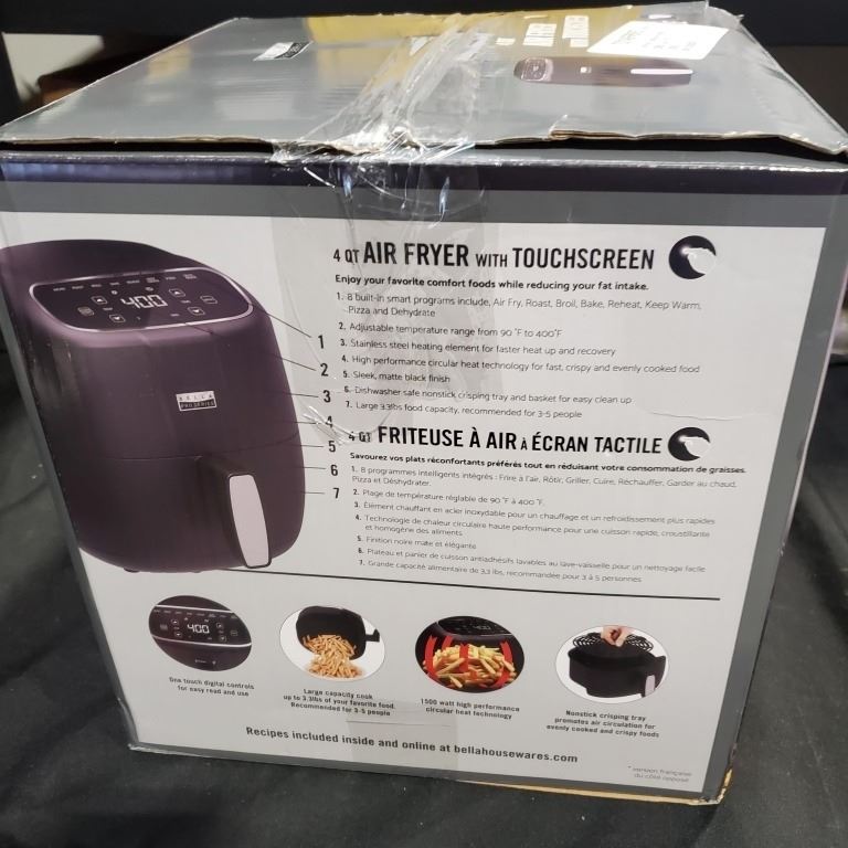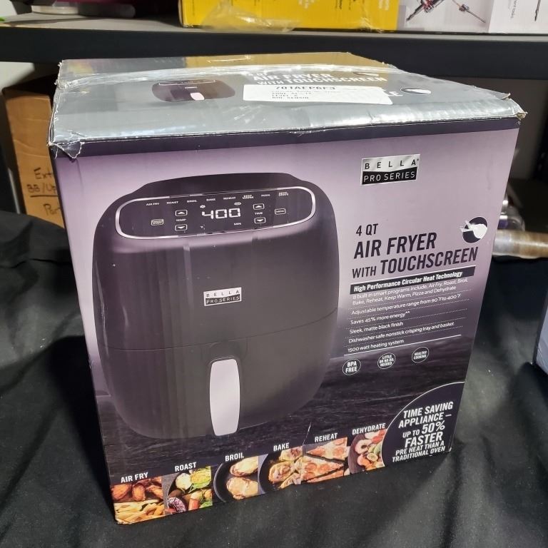 AS NEW BELLA PRO SERIES 4QT TOUCHSCREEN AIR FRYER TESTED AND WORKING RETAIL $179