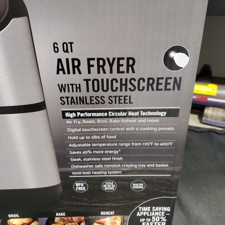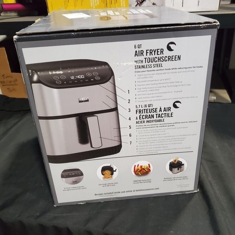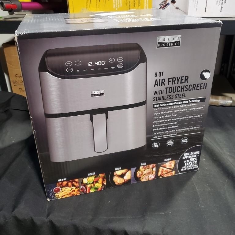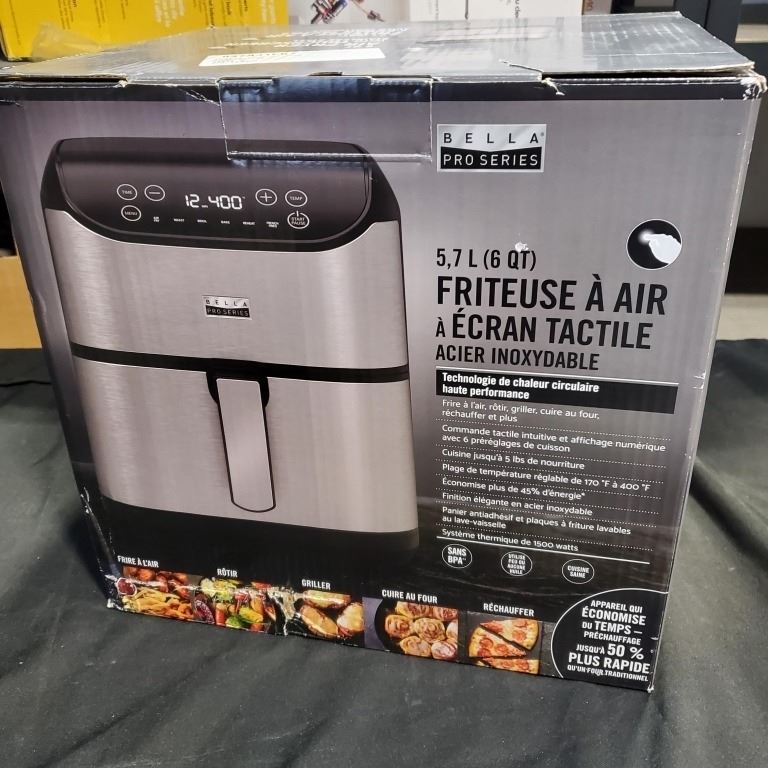 AS NEW BELLA PRO SERIES 6QT AIR FRYER WITH TOUCHSCREEN STAINLESS STEEL