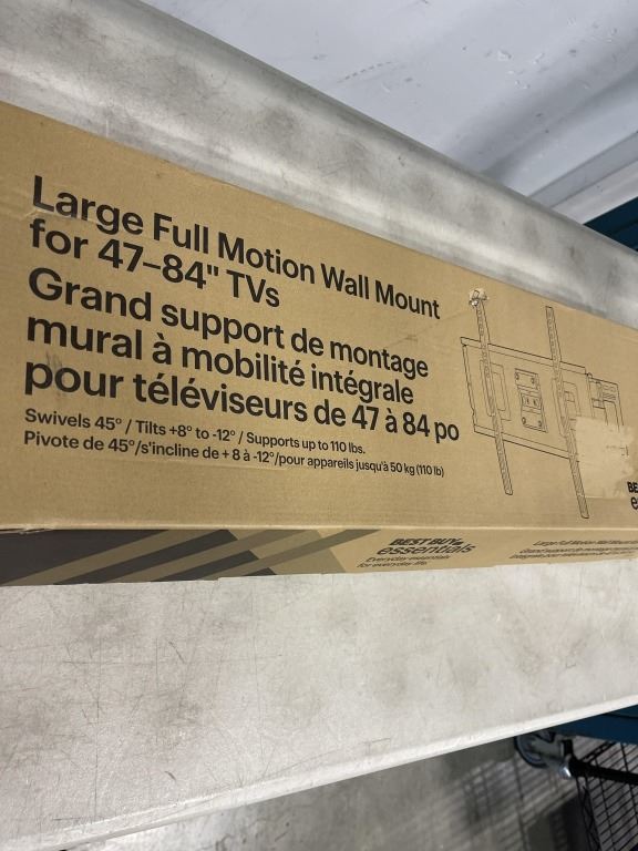 AS NEW BEST BUY ESSENTIALS 47-84 INCH FULL MOTION LARGE TV WALL MOUNT