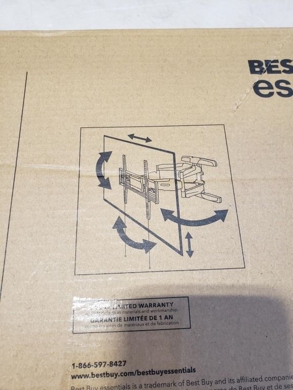 AS NEW BEST BUY ESSENTIALS 47-84 INCH FULL MOTION TV WALL MOUNT, SUPPORTS UP TO 110 LBS - RETAIL $11