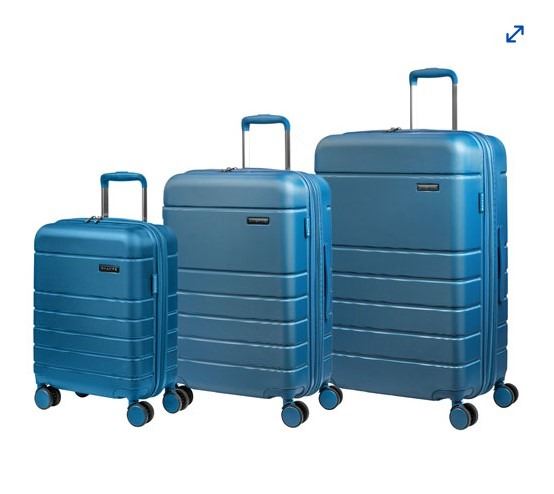 AS NEW CHAMPS JOURNEY COLLECTION 3PC CARRY ON LUGGAGE SET - BLUE - RETAIL $999