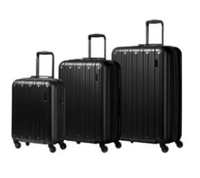 AS NEW CHAMPS RUNWAY BLACK 3 PIECE LUGGAGE SET - RETAIL $799