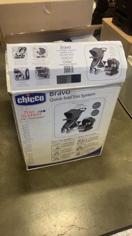 AS NEW CHICCO BRAVO QUICK FOLD TRIO SYSTEM STROLLER, RETAIL $459