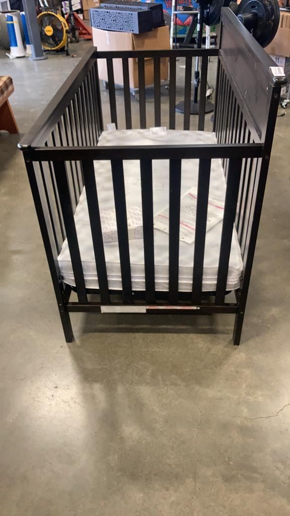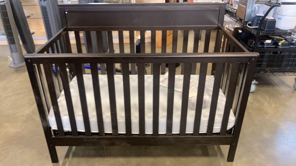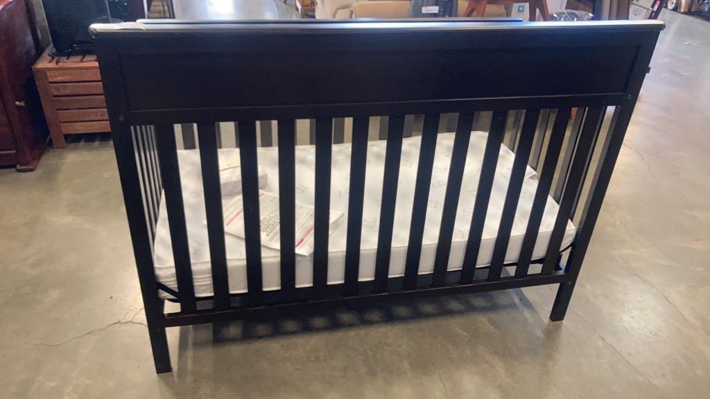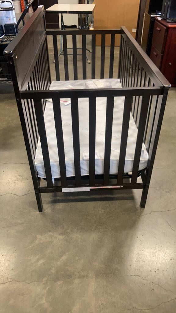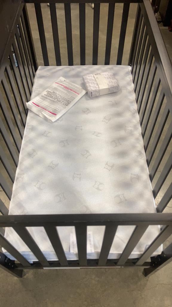 AS NEW CRIB WITH MATTRESS AND NEW SHEET SET