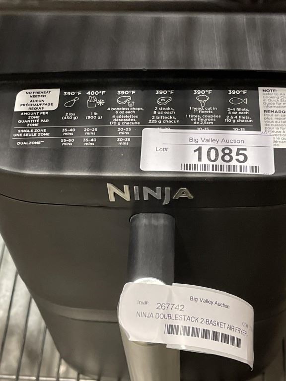 AS NEW DEMO NINJA DOUBLESTACK 2-BASKET AIR FRYER - TESTED WORKING, RETAIL $249