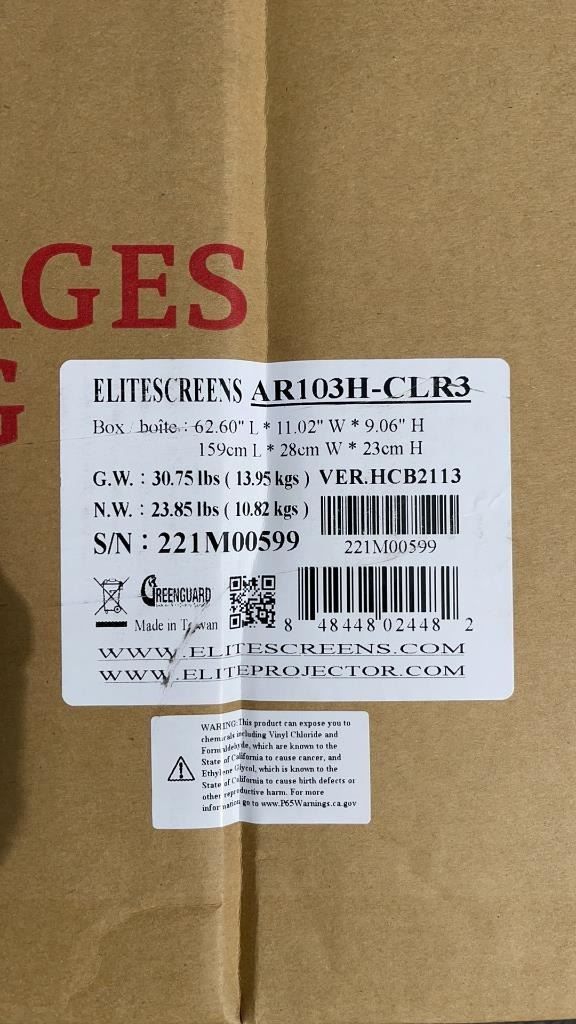 AS NEW ELITE SCREENS AEON CLR3 103" 16X9 FIXED FRAME PROJECTOR SCREEN - RETAIL $1499