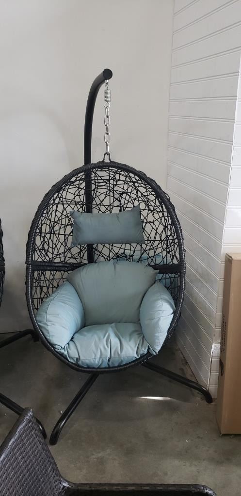 AS NEW FLOOR MODEL BLUE SINGLE SWING CHAIR - RETAIL $699