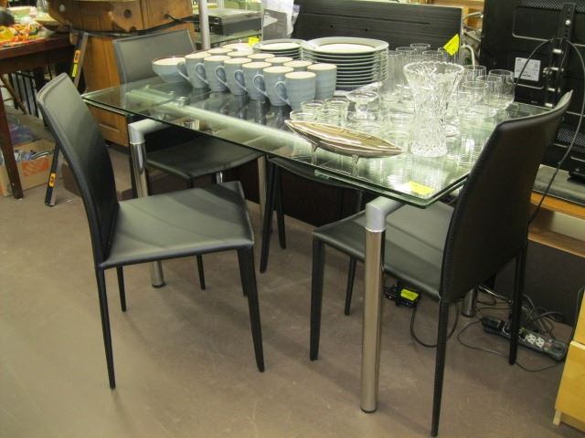 AS NEW GLASS TOP TABLE WITH DRAW LEAVES