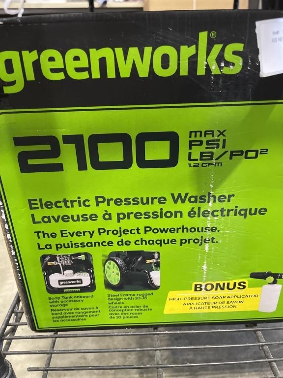 AS NEW GREENWORKS 2100PSI PRESSURE WASHER