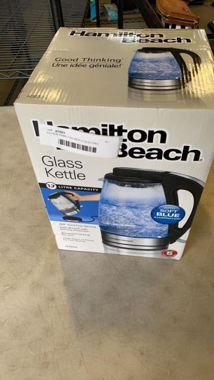 AS NEW HAMILTON BEACH ELECTRIC GLASS KETTLE WORKING