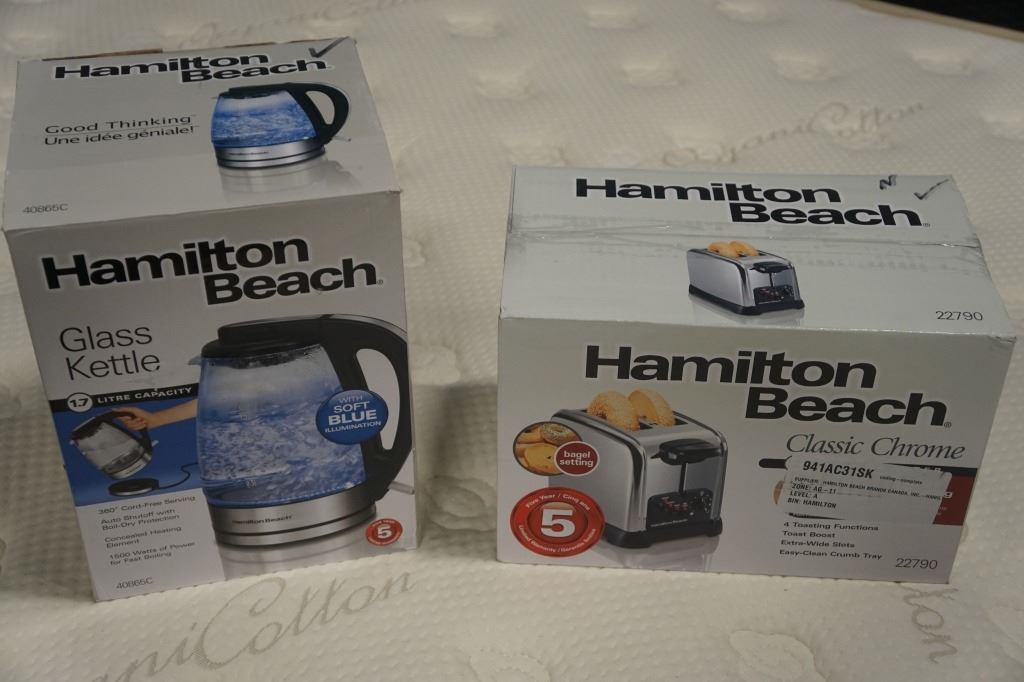 AS NEW HAMILTON BEACH GLASS KETTLE AND CLASSIC CHROME TOASTER - WORKING