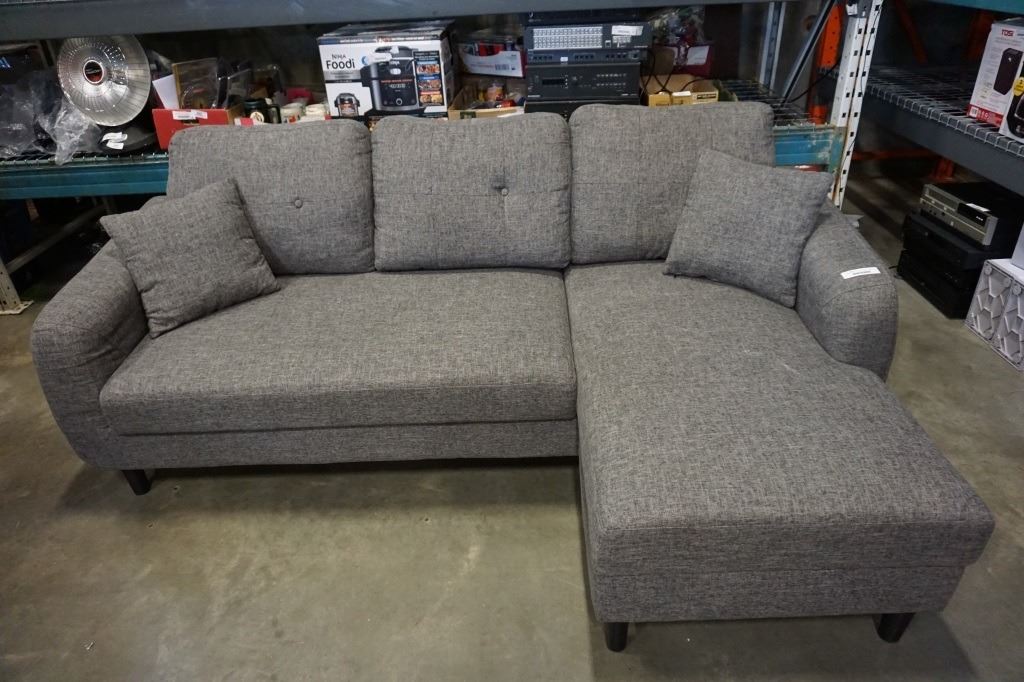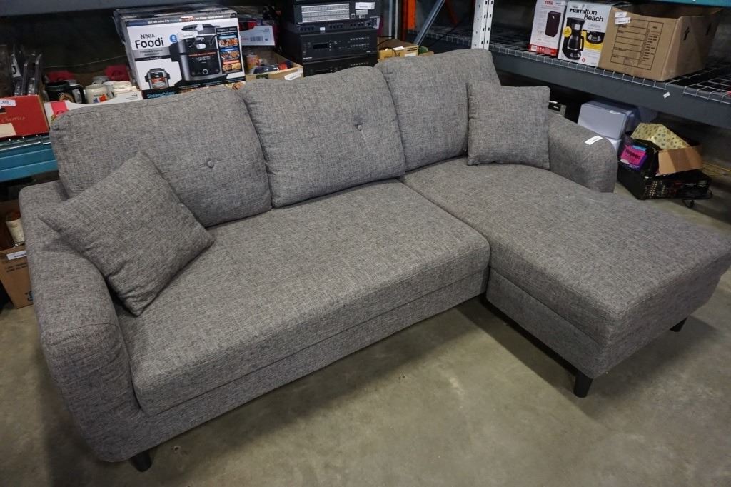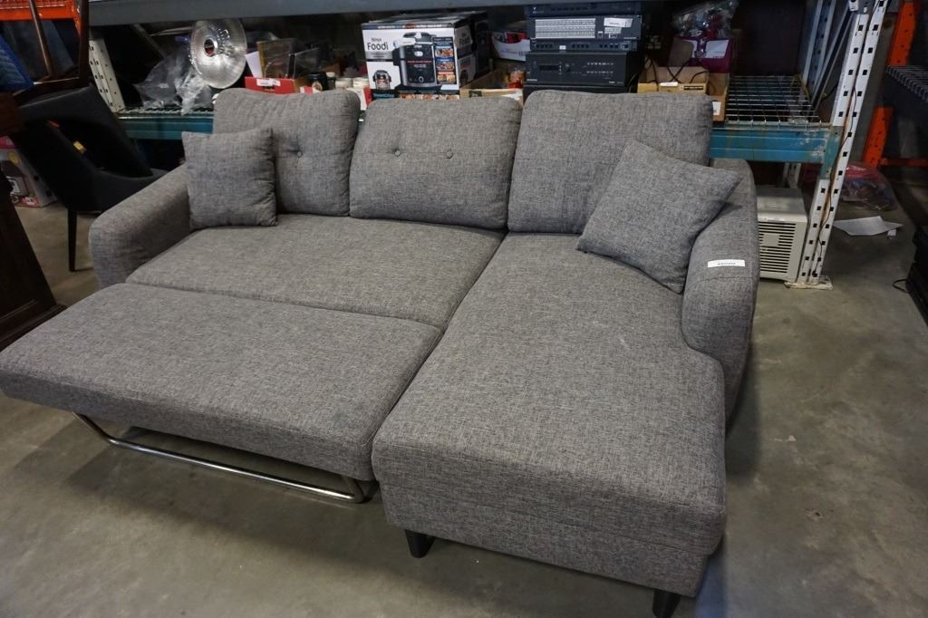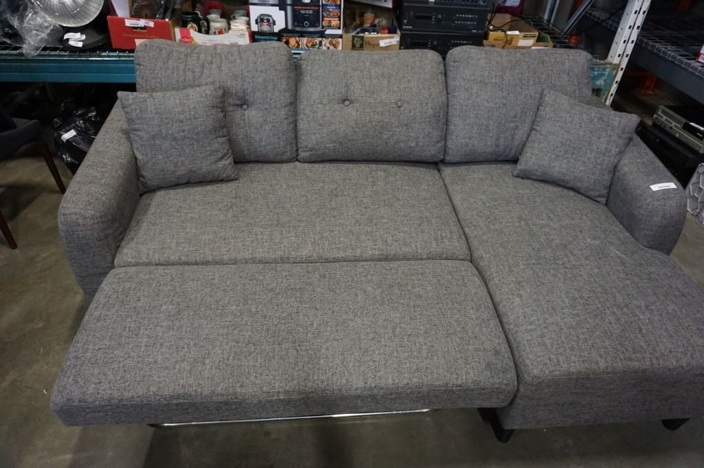 AS NEW HOME ELEGANCE GREY SLEEPER SOFA - RETAIL $1899