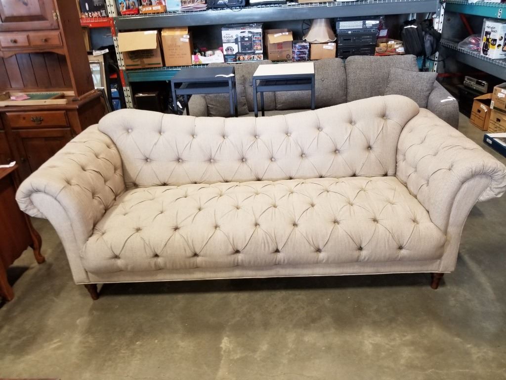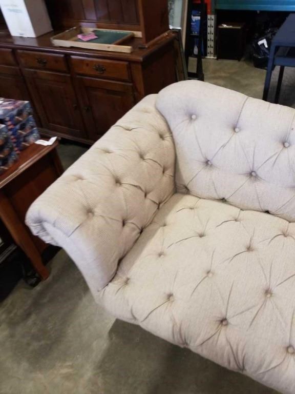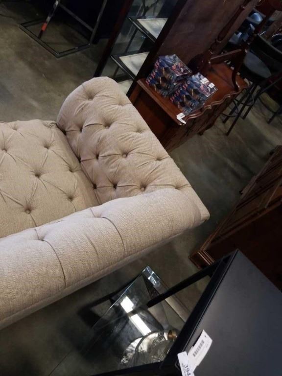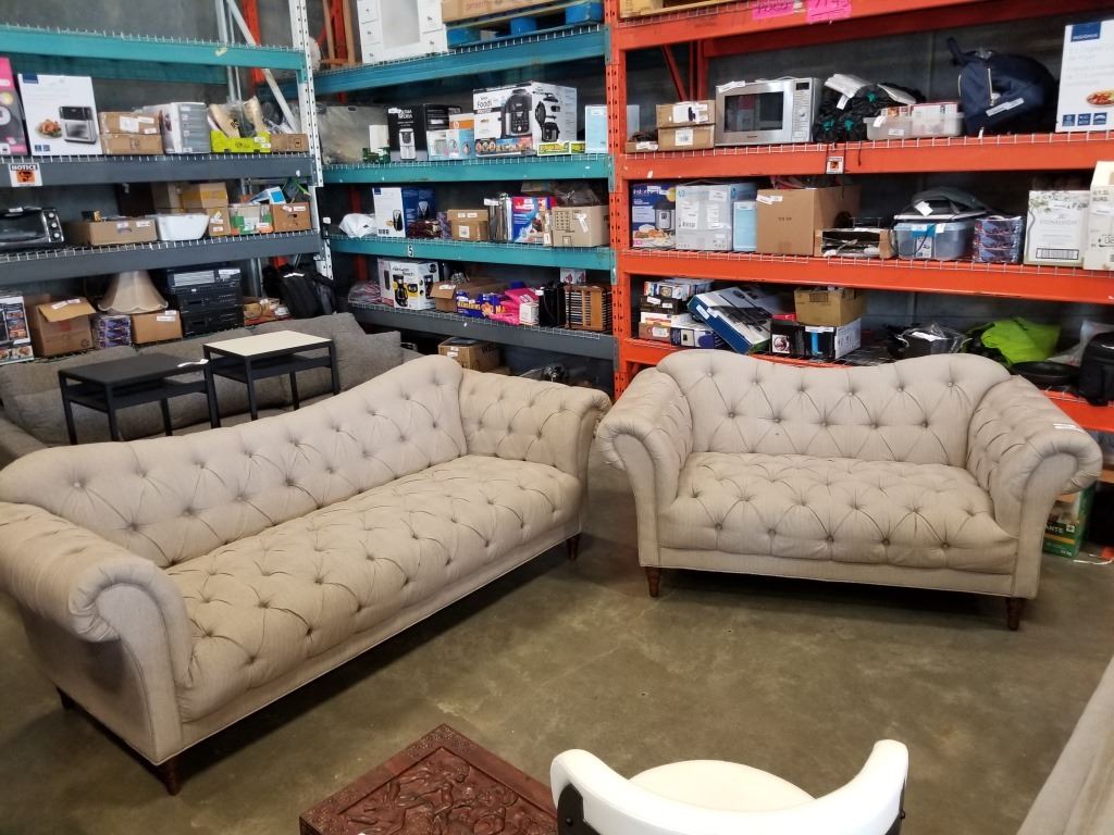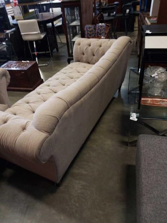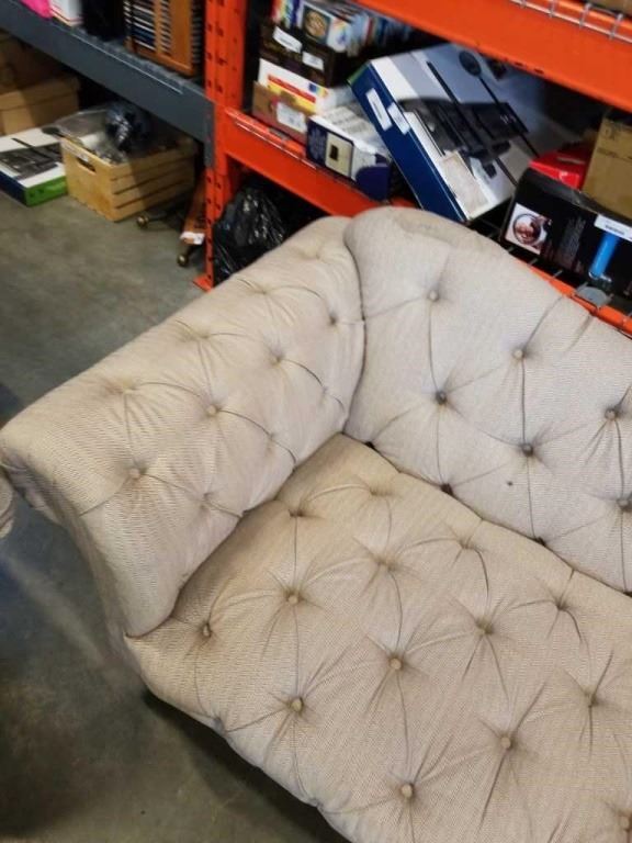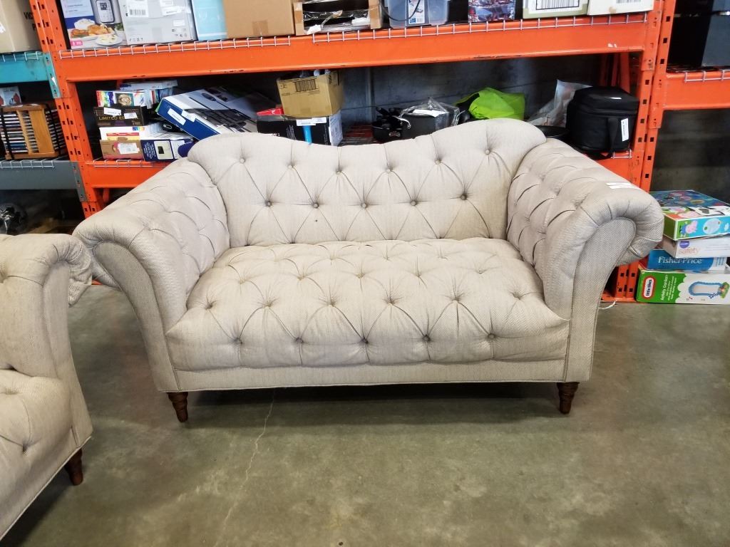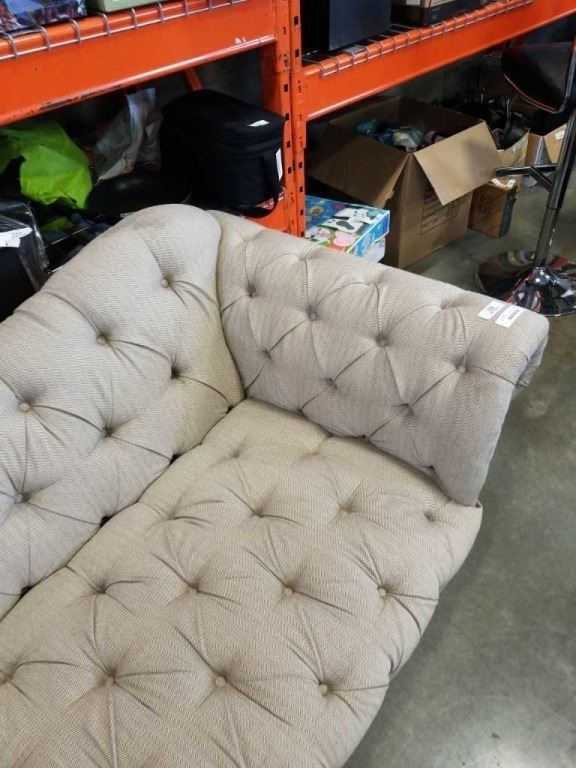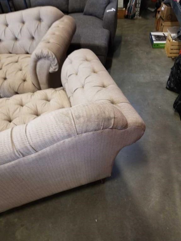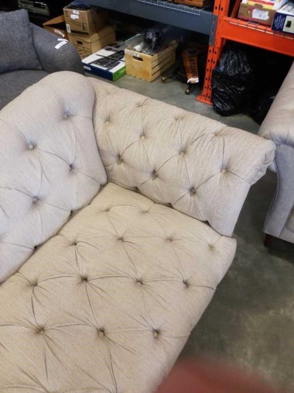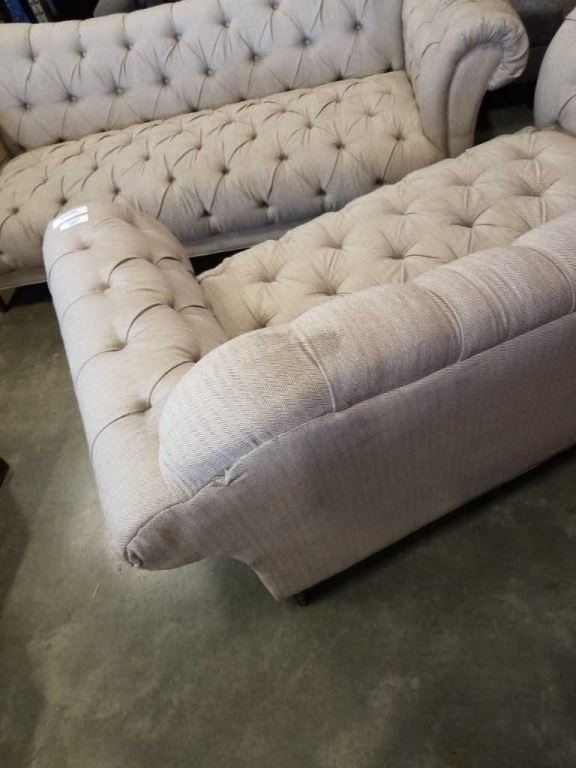 AS NEW HOME ELEGANCE TUFTED ROLLED ARM SOFA AND LOVE SEAT AS NEW RETAIL - RETAIL $2699