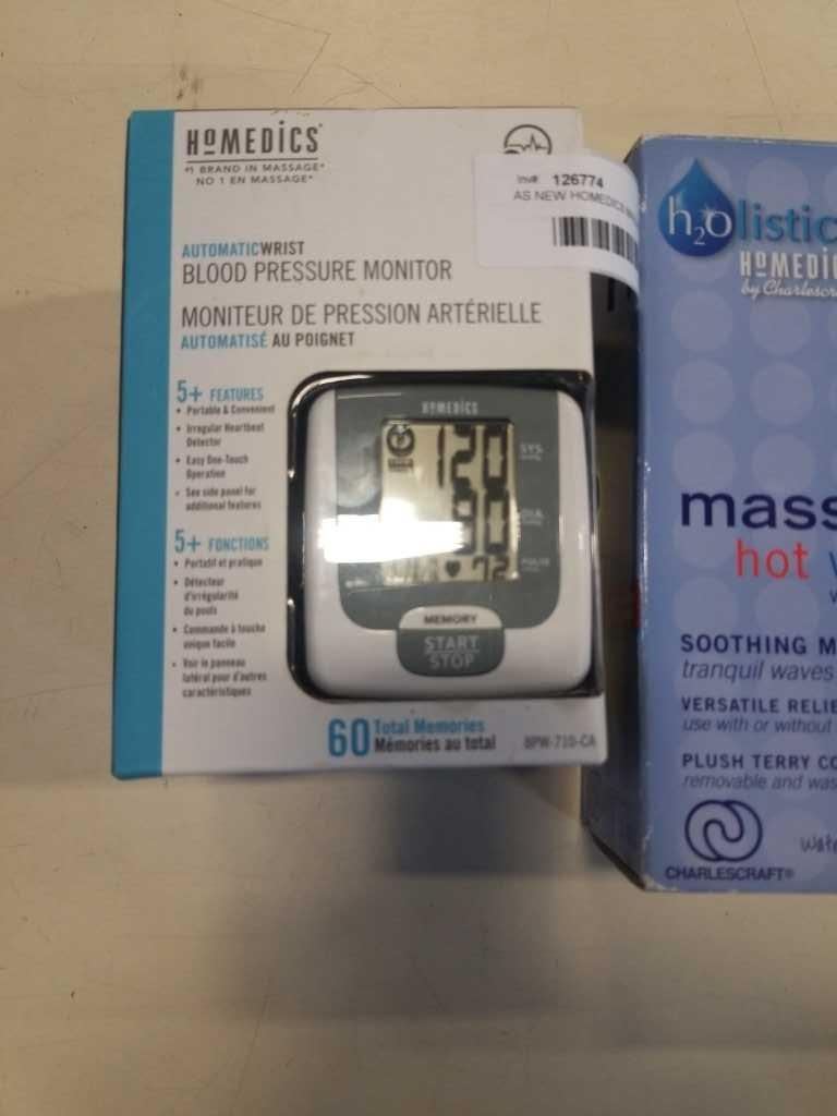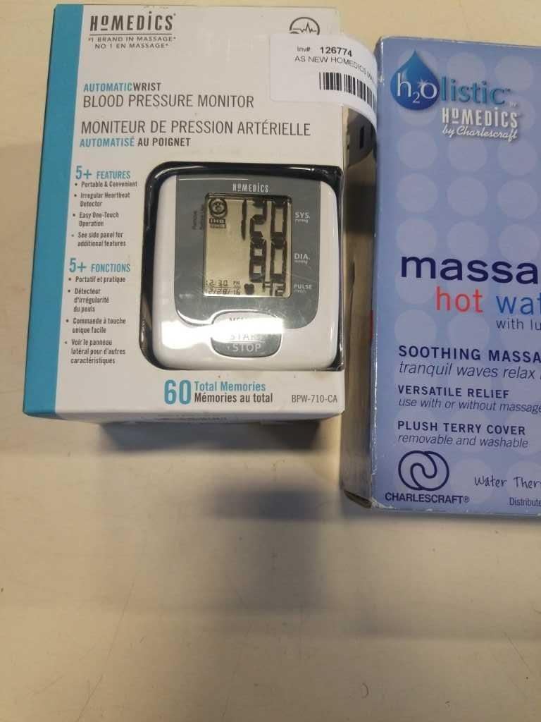 AS NEW HOMEDICS MASSAGING WATER BOTTLES AND BLOOD PRESSURE MONITOR