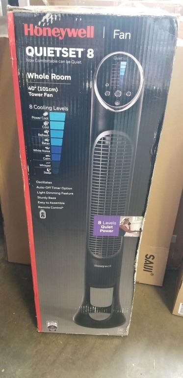 AS NEW HONEYWELL QUIETSET 8 TOWER FAN, COMPLETE AND WORKING