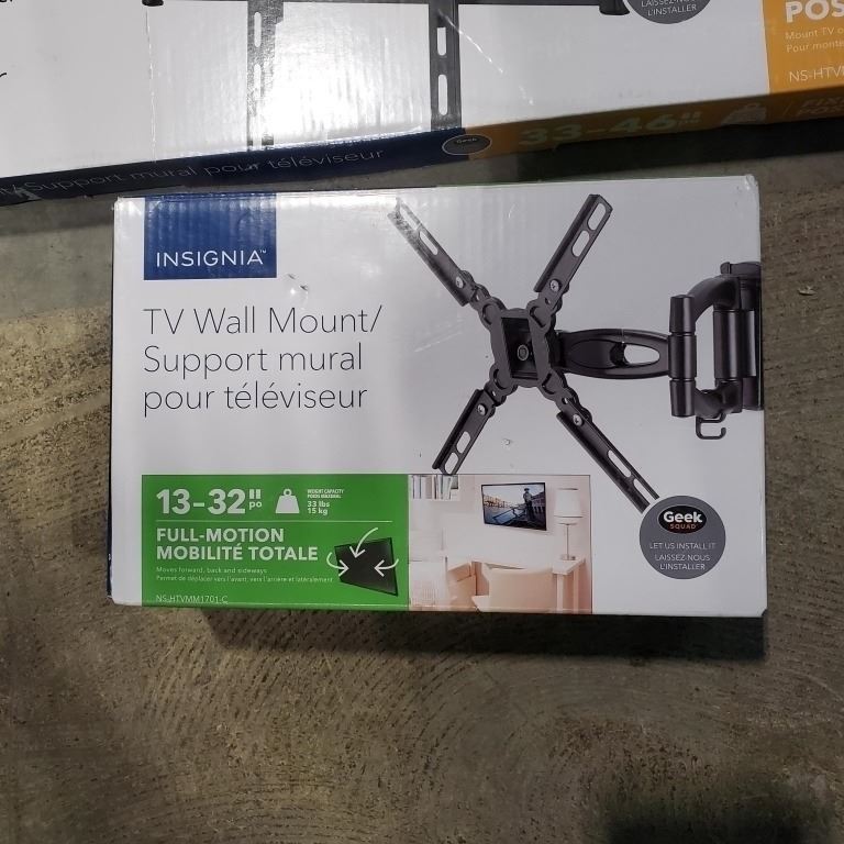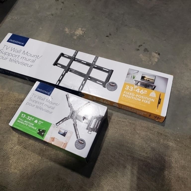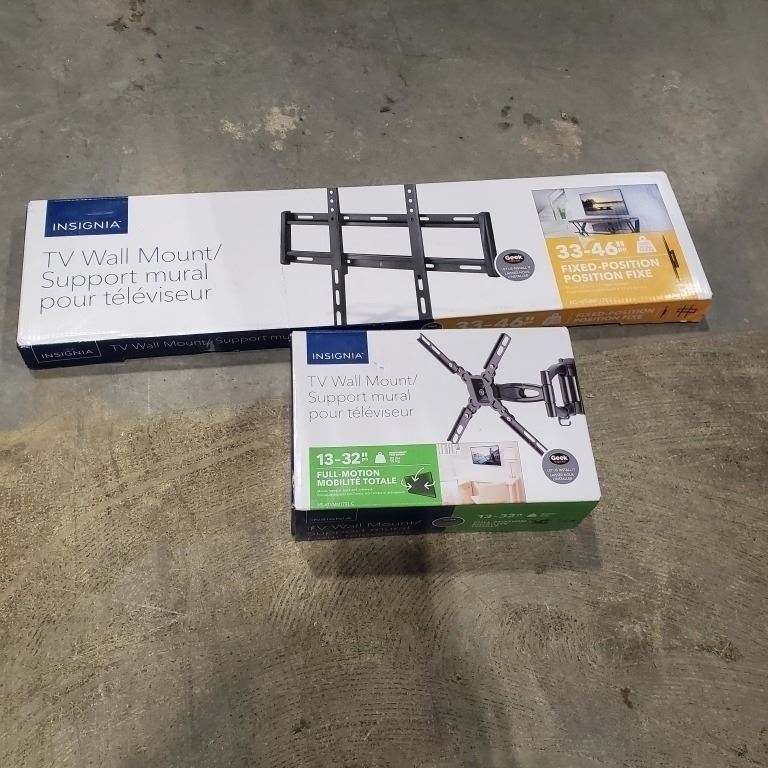 AS NEW INSIGNIA 13"-32" FULL MOTION AND 33"-46" FIXED TV WALL MOUNTS - RETAIL $129