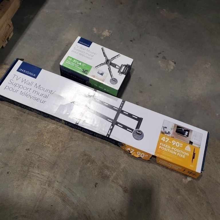 AS NEW INSIGNIA 13"-32" FULL MOTION AND 47"-90" FIXED TV WALL MOUNTS - RETAIL $159