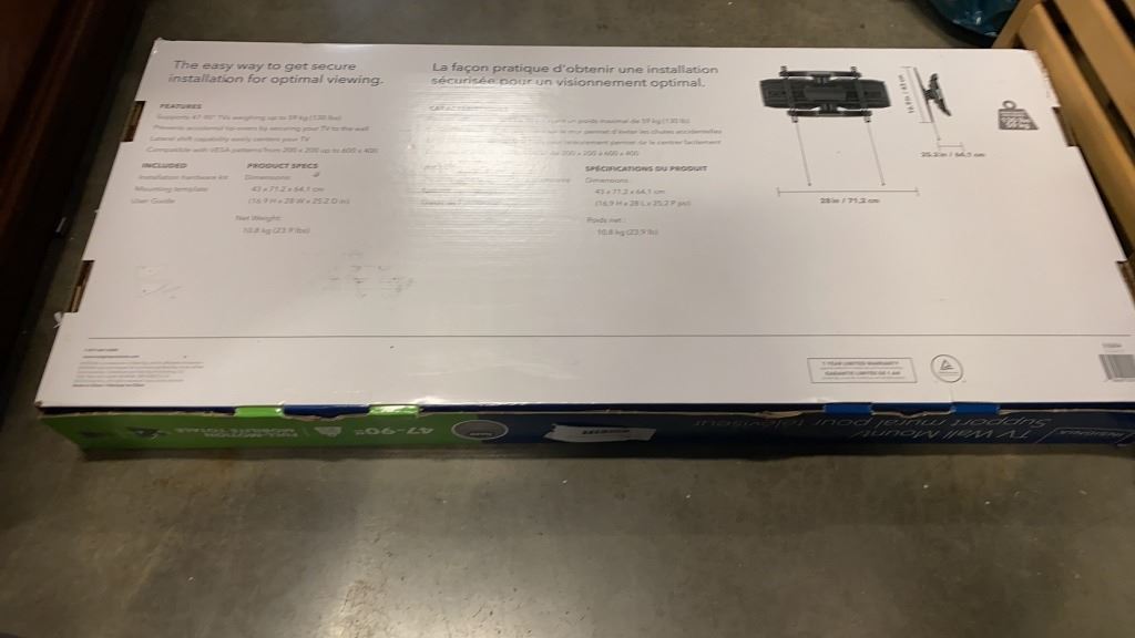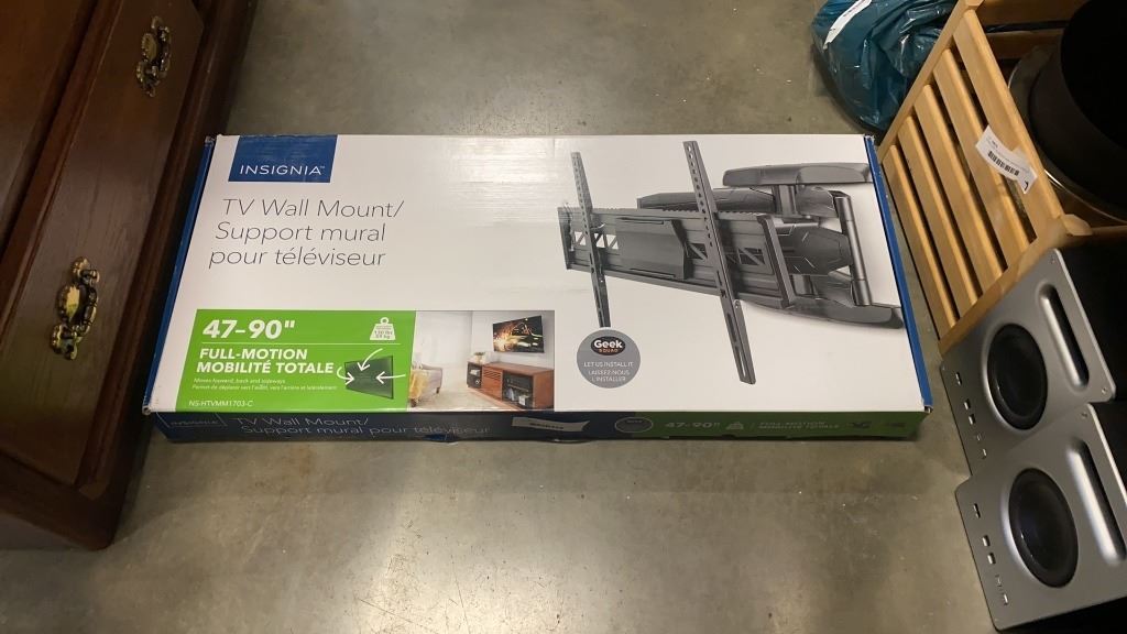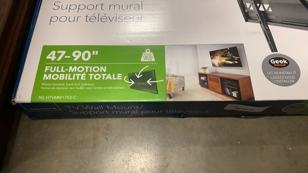 AS NEW INSIGNIA 47-90 INCH FULL MOTION TV WALL MOUNT UP TO 130LBS - RETAIL $199