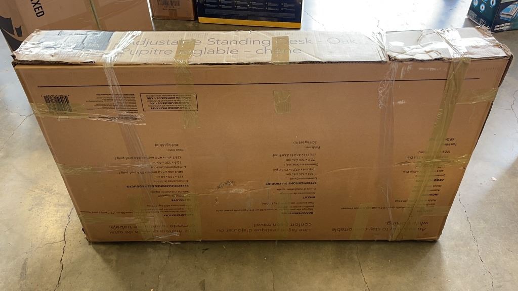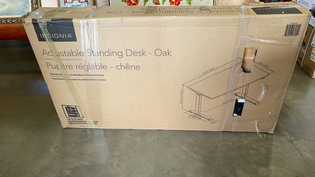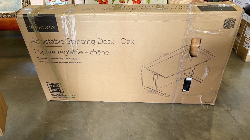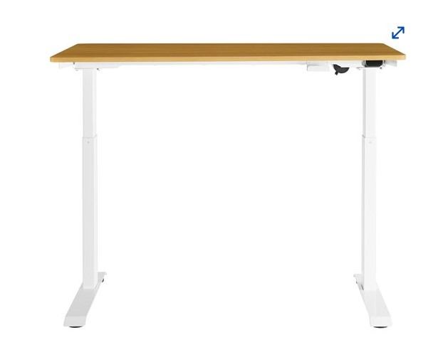 AS NEW INSIGNIA ELECTRIC ADJUSTABLE STANDING DESK OAK - RETAIL $399