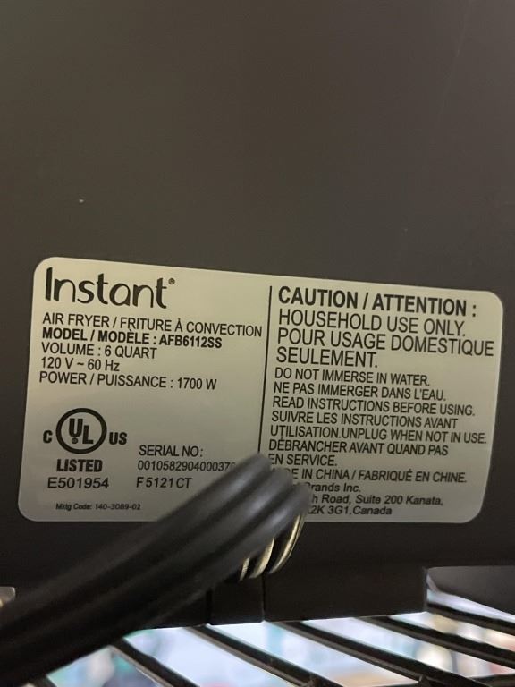 AS NEW INSTANT POT 6QT VORTEX PLUS AIR FRYER - TESTED WORKING, RETAIL $189