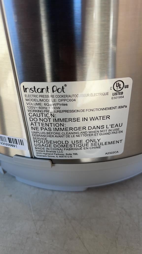 AS NEW INSTANT POT DUO PLUS 6QT 9 IN 1 PRESSURE COOKER TESTED AND WORKING - RETAIL $199