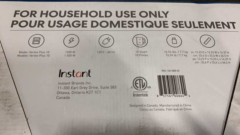 AS NEW INSTANT POT VORTEX PLUS AIR FRYER OVEN