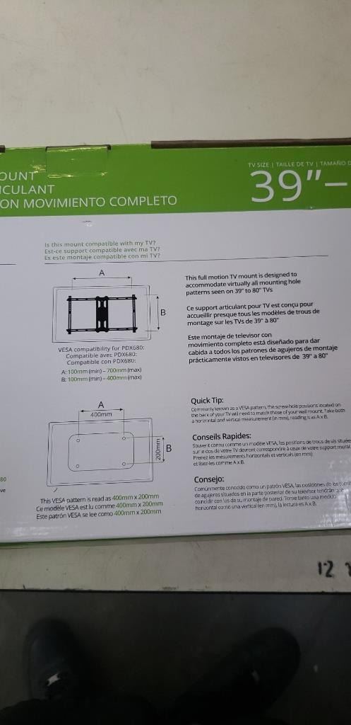 AS NEW KANTO 39-80 INCH FULL MOTION TV WALL MOUNT, RETAIL $219