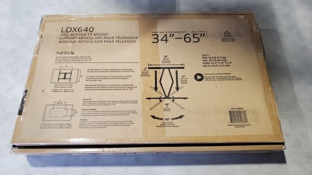 AS NEW KANTO LDX640 FULL MOTION 34"-65" TV WALL MOUNT - RETAIL $139