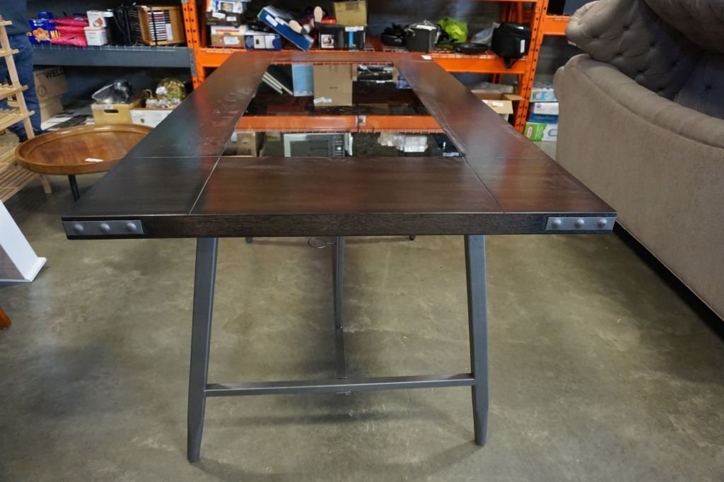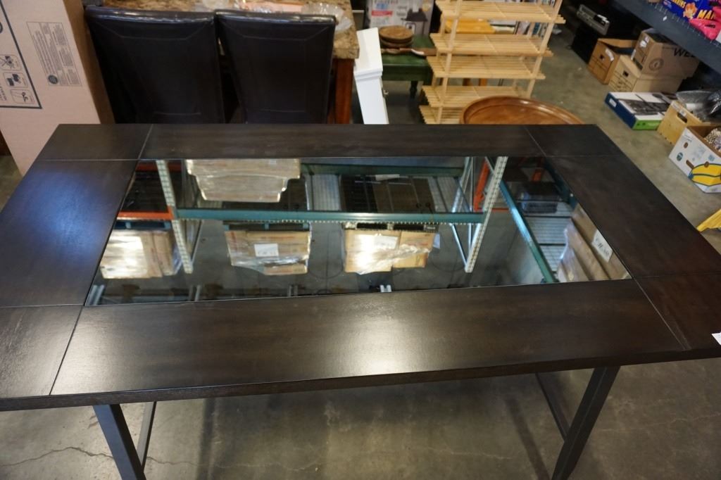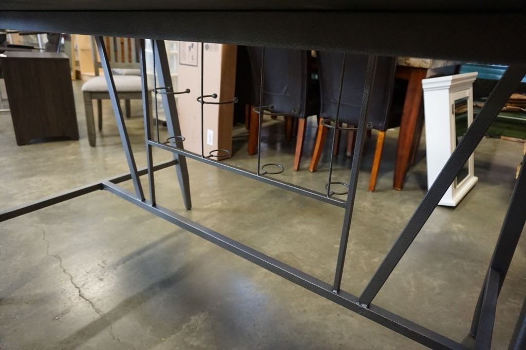 AS NEW MAZIN TABLE W/ GLASS INSERT, WINE RACK, AND 2 CHAIRS