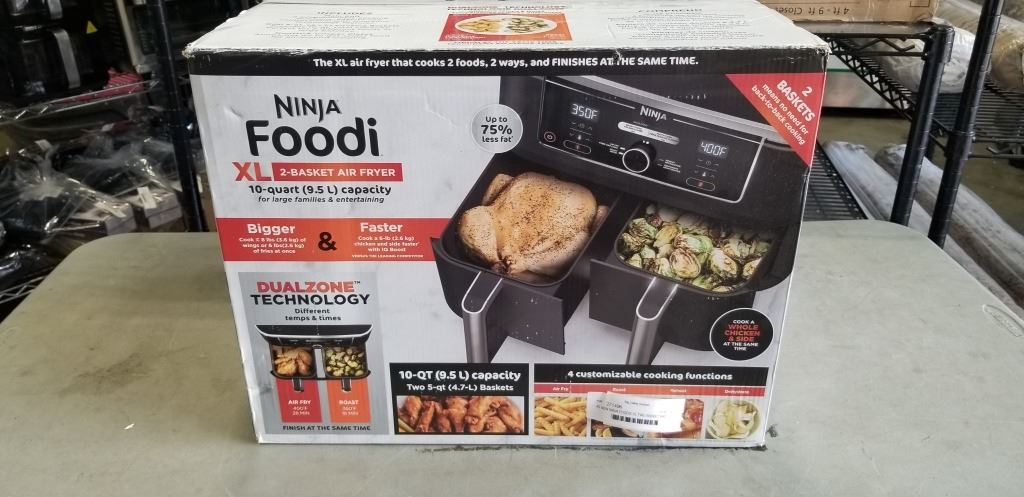 AS NEW NINJA FOODIE XL TWO BASKET AIR FRYER WORKING