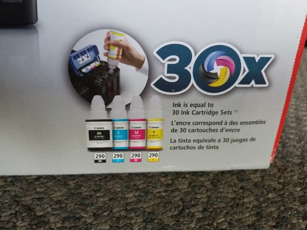 AS NEW PIXMA G3200 ALL IN ONE PRINTER WITH MEGATANK REFILLABLE SYSTEM AND NEW INK BOTTLES
