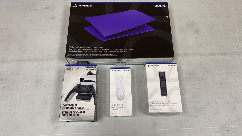 AS NEW PLAYSTATION 5 DIGITAL EDITION CONSOLE COVER WITH CONTROLLER CHARGING SYSTEM, DUAL SENSE CHARGING STATION AND MEDIA REMOTE