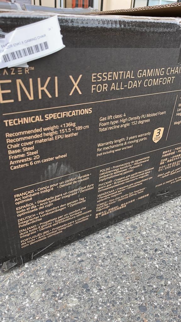 AS NEW RAZER ENKI X GAMING CHAIR - RETAIL $549