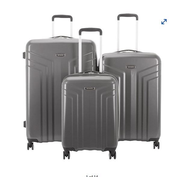 AS NEW SAMSONITE 3 PIECE SYMPHONY DLX LUGGAGE SET CHARCOAL - RETAIL $899
