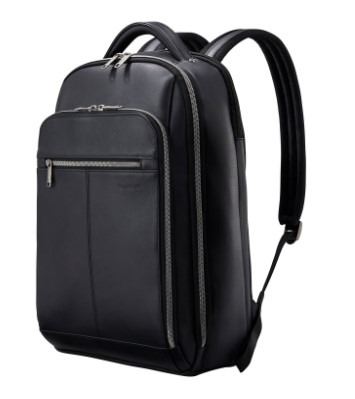 AS NEW SAMSONITE BLACK BUSINESS LEATHER BACKPACK - RETAIL $244