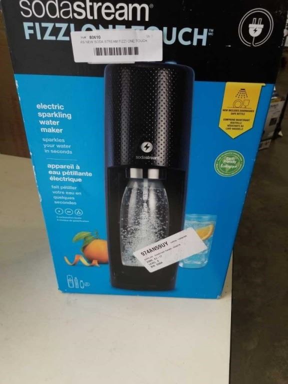 AS NEW SODA STREAM FIZZI ONE TOUCH SPARKLING WATER MAKER - CO2 BOTTLE NOT INCLUDED