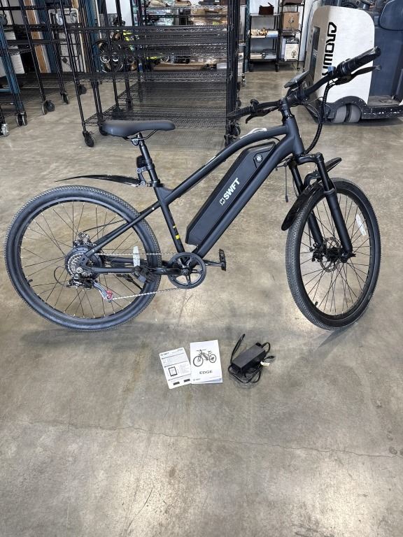 AS NEW SWIFT EDGE ELECTRIC MOUNTAIN BIKE, TESTED WORKING WITH CHARGER AND MANUAL, BATTERY LOCKED IN